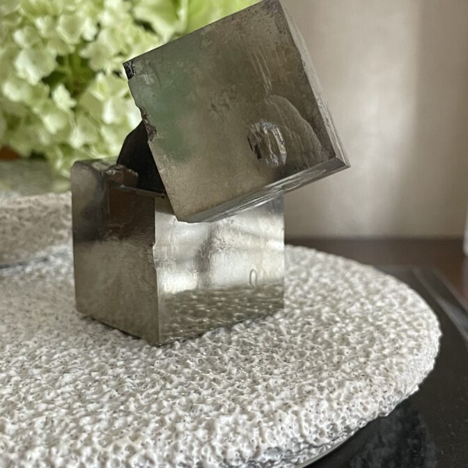 重く、大きめのサイズで存在感たっぷり。立方体に削られた見た目はまるでアート作品です。