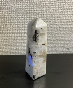 こちらの石のかたちは、オベリスクと呼んでいます。 Wikipediaによると、古代エジプト期に製作され、神殿などに立てられたモニュメントの一種、とあります。上の写真のレインボームーンストーンも形はこのオベリスクにかたちづけられたものになります。タワーと呼ばれるものとは違い、オベリスクは先端部にあるピラミッド状に特徴があります。