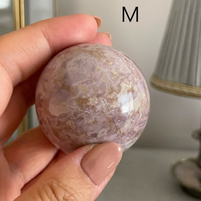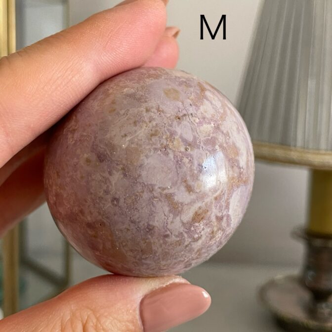やわらかなラベンダーピンクが魅力のペルー産フォスフォシデライト スフィア。自然の力が詰まったこのストーンは、癒しの効果があると言われています。多様なサイズから選べるので、お好きな大きさの石をお楽しみいただけます。