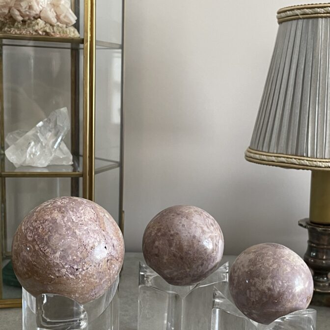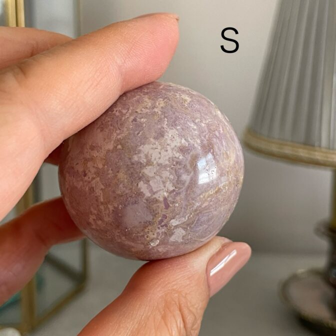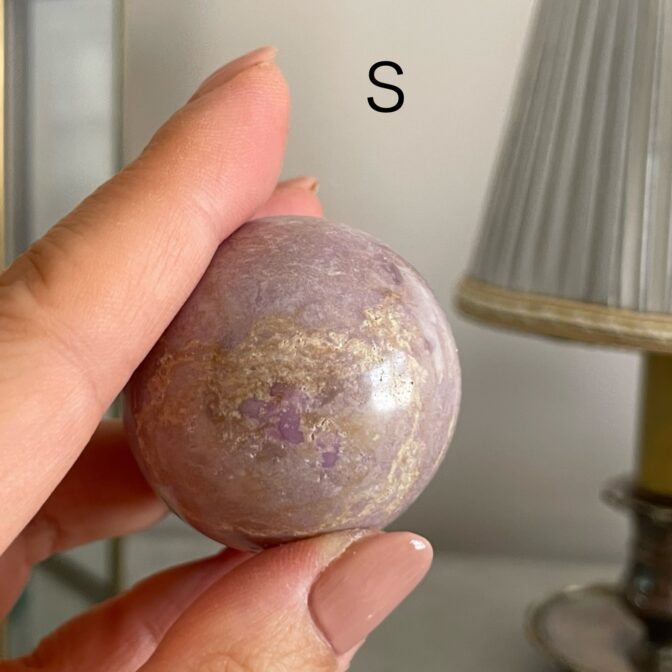 やわらかなラベンダーピンクが魅力のペルー産フォスフォシデライト スフィア。自然の力が詰まったこのストーンは、癒しの効果があると言われています。多様なサイズから選べるので、お好きな大きさの石をお楽しみいただけます。